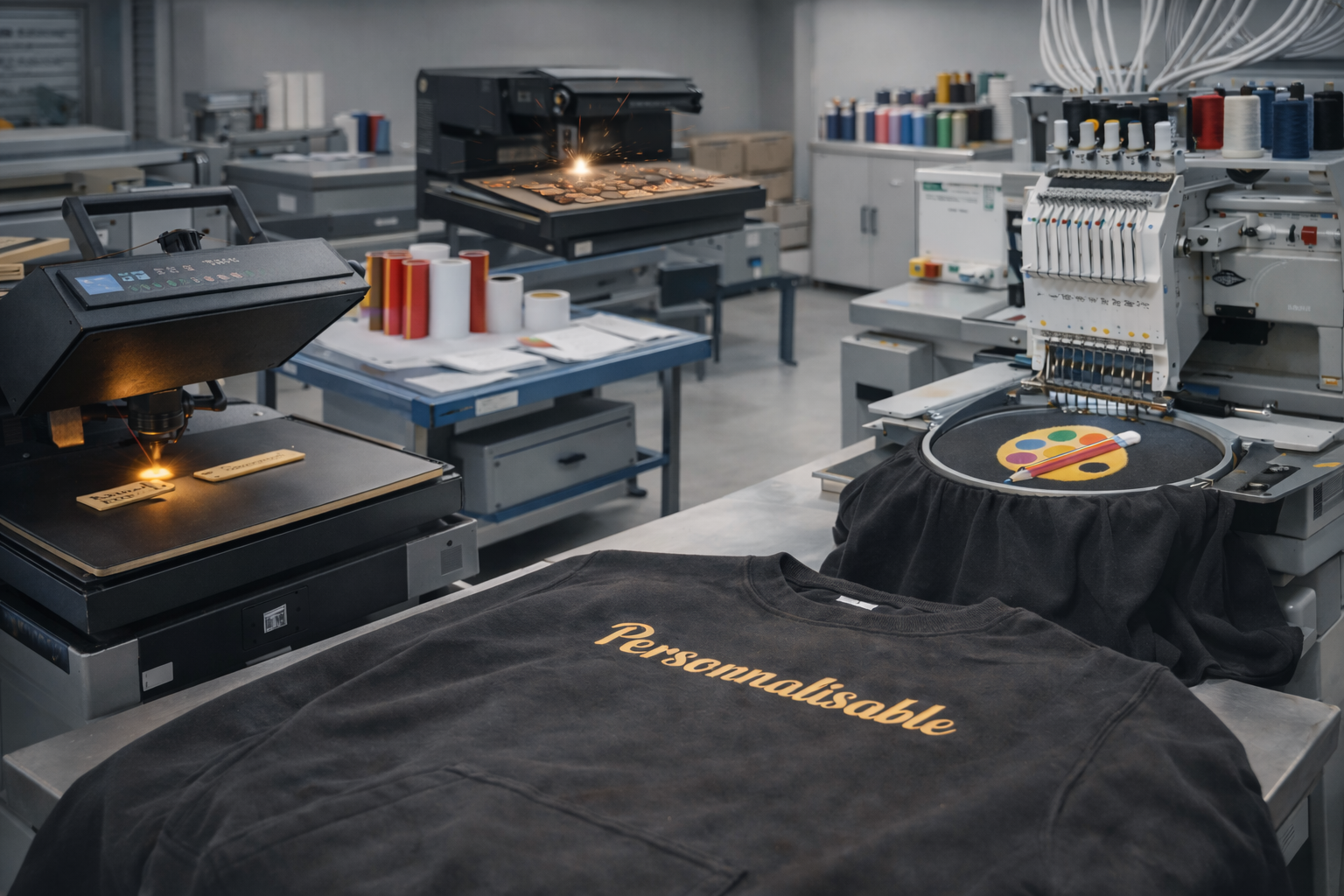 Nous créons des vêtements et objets uniques grâce à différentes techniques professionnelles : flocage, broderie, gravure laser, impression et marquage textile. Que vous soyez un particulier, une association ou une entreprise, notre objectif est simple : transformer vos idées en produits concrets, durables et de qualité.